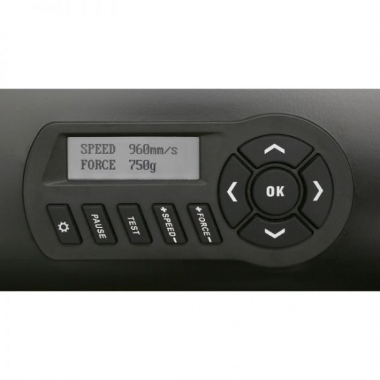 Duży podświetlany wyświetlacz z dużymi przyciskami sprawia, że T60 jest bardzo łatwy w użyciu. Secabo T60 jest sterowany za pomocą dołączonego oprogramowania Draw-Cut Pro z licencją dożywotnią. Oprócz rozbudowanych funkcji projektowych i układu oprogramowanie ponadto kontroluje systemy Lapos XPT do druku i cięcia aplikacji.